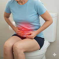 Constipation, IBS, Enlarged Hemorrhoids, and Diverticular Disease.